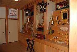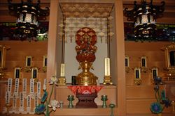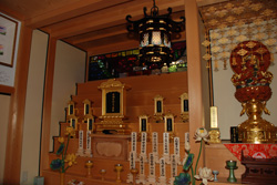 十二畳半の「室中」(臨済宗では本堂中央を室中という)に入れば、正面の真前(臨済宗では御本尊様がいらっしゃる所を真前という)の須弥壇には御本尊様が鎮座されています。