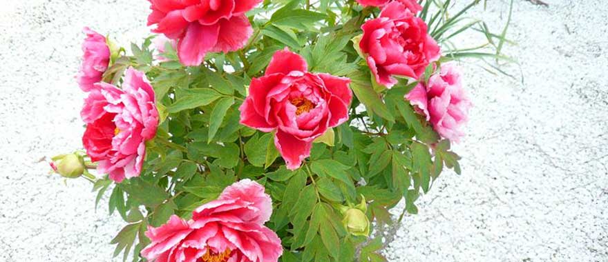 季節 春 境内の所々に様々な花が季節の移ろいに合わせて次々と色をそえていきます。 春は、牡丹や藤が咲き、本堂正面を鮮やかな色彩が飾ります。 浜風漂う春の境内、春を迎えた喜びが、色とりどりの花から聞こえます。